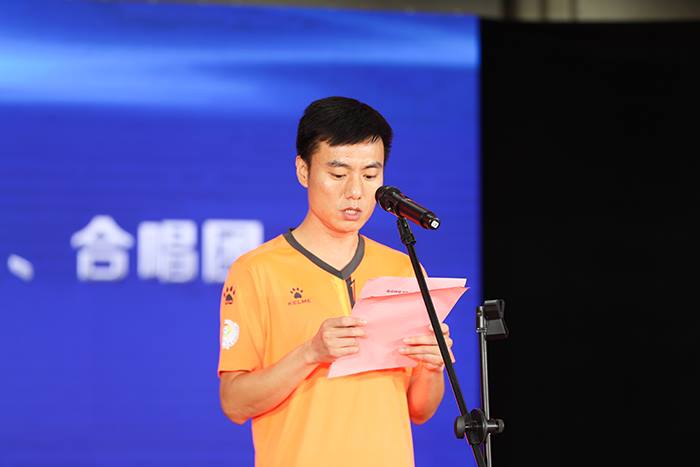 熊猫体育足球队领队栗增宣读《足球队章程》及主要成员名单