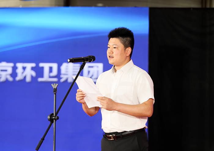 熊猫体育足球队队员代表、固废物流公司员工王洋发言