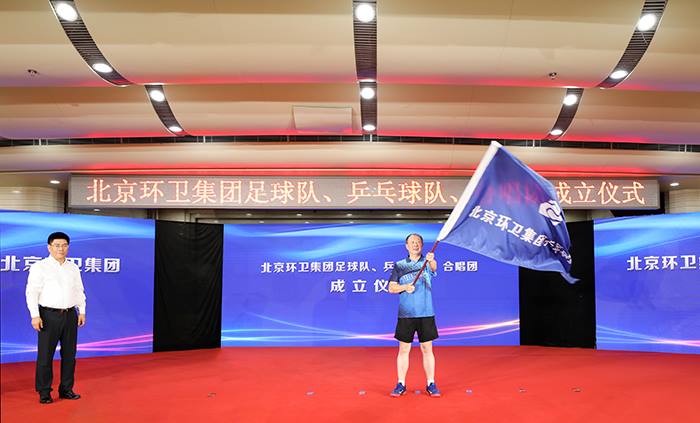 仪式最后,集团领导分别为足球队、乒乓球队、合唱团授旗。