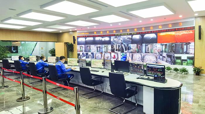 在阿苏卫园区公司中控大厅,工作人员认真观察显示屏,确保焚烧设施正常运行(阿苏卫园区公司 李海磊 摄)