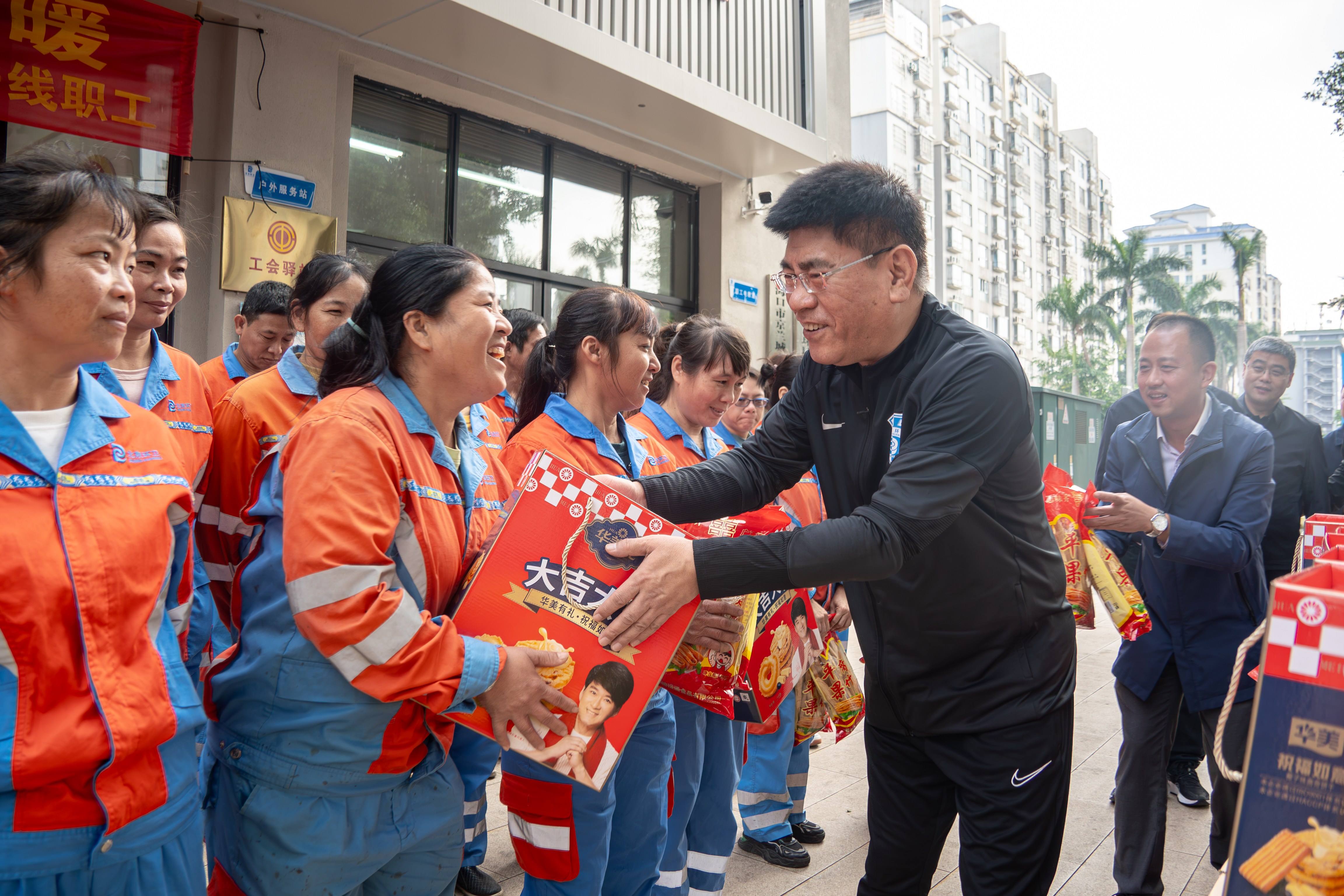 12月17日,高踪阳同志一行深入作业一线开展“心系一线 千里送暖”慰问活动,向长期奋战一线的环卫职工送上慰问品,对海南分公司广大干部职工的辛勤付出和坚守奉献表示衷心感谢,并提前送上节日祝福,叮嘱大家注意劳逸结合,让一线职工深切感受到“熊猫体育”大家庭的温暖。